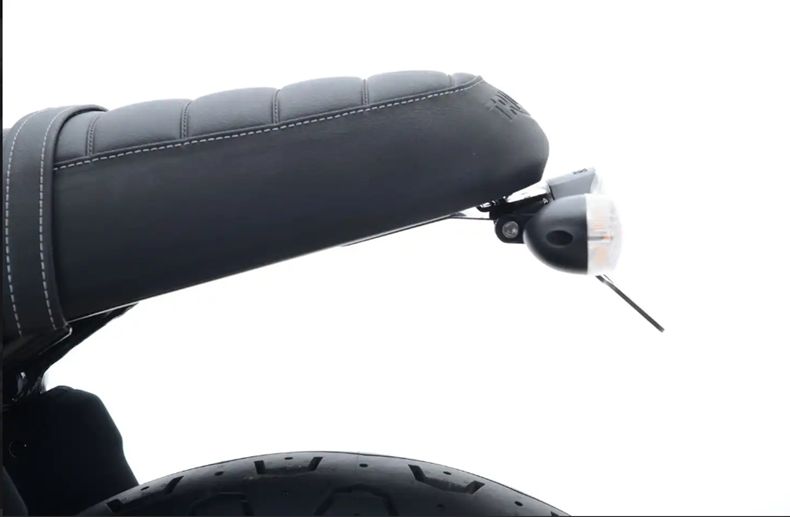 Tidy up the rear end of the Triumph Street Twin '16 onwards with this powder coated stainless steel R&G Tail Tidy/Licence Plate Holder. Made from stainless steel for superior strength, each piece is powder coated black for great looks and durability. Our tail tidy units are easy to fit and transform the rear of the bike, removing the expansive (and ugly!) OEM licence plate holders - replacing them with a much sleeker looking unit, tucking the number plate underneath the rear seat unit, for a more stylish look. Compatible with the Triumph Street Twin '16-, Scrambler 900 ’23- & Speed Twin 900 '22- '24, and can be fitted with either OEM indicators or our own R&G aftermarket micro/mini indicators (RG370/RG371/RG372).